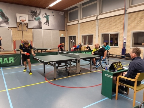 Robert mocht beginnen en kwamen er al snel achter dat TIAN een verschrikkelijk spelletje heeft ALLEEN maar schuiven, ook bij de andere thuis wedstrijd. Robert die vandaag niet lekker in zijn spel kwam had dat veel moeite met de eerste tegenstander en verloor jammer genoeg met 0-3. De dubbel met André ging wel weer goed, de jongens van TIAN hadden veel moeite met het gegeven dat WIJ niet om-en-om hoeven te spelen en ging de winst naar Hercules met 3-0. Robert die gelijk na de dubbel weer moest maar net zoals in de eerste wedstrijd liep het niet tegen dat geschuif van zijn tegenstander. Maar de laatste partij pakte Robert toch de winst, wat een strijd vooral tegen zich zelf maar winst is winst.
