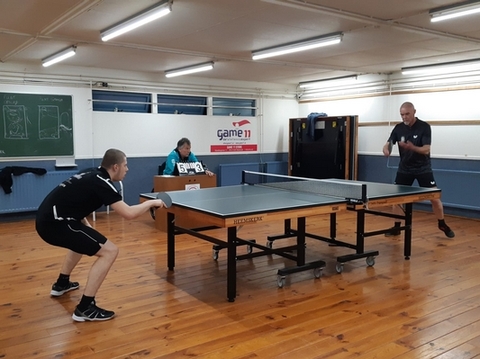 Robert die heel veel last had van de vloer die giga afliep, en dat betekend dat elke keer je rolstoel wat weg reed en je niet meer goed staat. De eerste wedstrijd ging in 4 games verloren en de tweede ook maar hier ging het veel beter beetje vals spelen (voet op de grond) maar deze keer mocht het, game standen waren best goed 8-11, 13-11, 11-13 en 14-16. Wetend dat je je voet op de grond zet ging het heel goed in de laatste wedstrijd, want Fred had de eerste 2 games geen kans 11-1 en 11-6 de laatste game werd het nog 11-9 voor Robert.