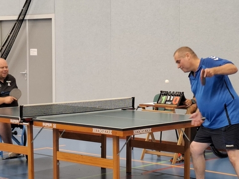 De dubbel wedstrijd van Robert en André ging heel eenvoudig naar ons, uitslag 3-0 en hadden eigenlijk weinig tegenstand. André had geen moeite met 2 van de 3 spelers van Bredevoort deze werden dan ook met 3-0 gewonnen. De tweede partij tegen de hun kopman was een titanenstrijd. De eerste game verloor André met 7-11 maar vervolgens won het de 2 komende games, toch werd het weer 2-2 en moest de vijfde game de beslissing brengen. Deze ging ook gelijk op maar op 10-8 voorsprong van André kreeg hij een randbal tegen en vervolgens een service fout 10-10 dus maar toch lukte het om met 10-12 te winnen. De uitslag tegen dit goede team 4-6 verlies een mooie uitslag.