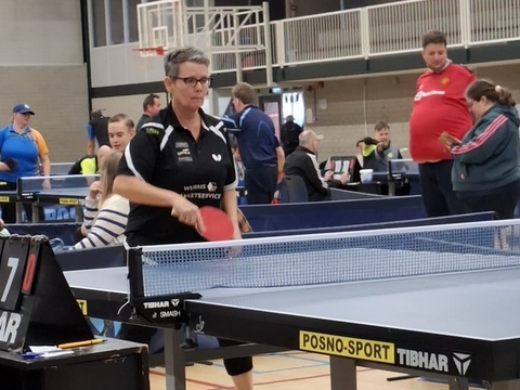 Martijn de schuiftafeltennisser van Hercules en Nederlands Kampioen zat in een poule van 3, en moest 2 wedstrijden vol aan de bak maar het ging toch makkelijk want van Henk won hij met 2-0 (11-2, 11-5) en vervolgens van Aniek ook met 2-0 (11-4, 11-4). En zo ging Martijn naar de halve finale waar hij Mark tegen kwam en de eerste game een spannende werd 11-9 maar daarna ging het gas erop bij Martijn en won hij met 11-1 waar een finale plaats stond te wachten. Liduin was daar de tegenstander maar Martijn begon voortvarend en won met 11-6 maar wat niemand had verwacht Martijn VERLIESD een game met 9-11 (achteraf zei hij al, ik maakte 7 fouten door de bal te hoog in het net te spelen) maar Martijn was niet van slag te brengen en won beslissende game ruim met 11-5 en zo is hij weer een titel rijker.