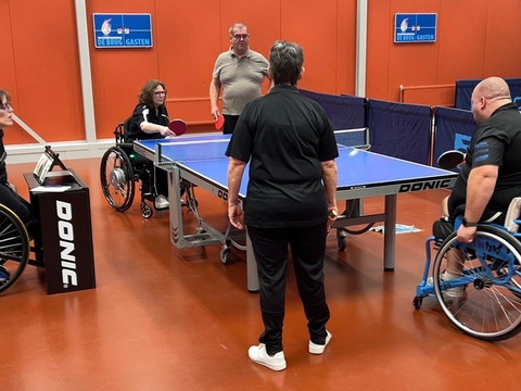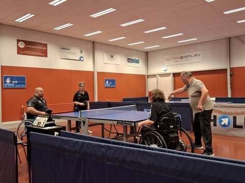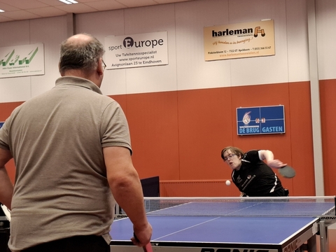 De eindstand 6-4 voor team 1. Twee wedstrijden wil ik er uitlichten Mariëlle tegen Rik, deze won Rik tegen de meer ervaren speler Mariëlle. Zo kan het niveau van onze paragroep alleen maar omhoog gaan, ook gezien de wedstrijd tussen Marco en Robert wat in 5 games werd gewonnen door Marco.