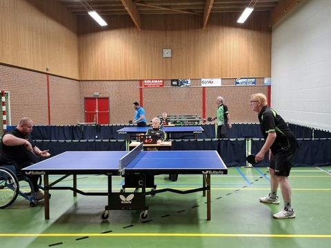 Zaterdag 8 maart 4:40 uur de deur uit, eerst Angelien ophalen en dan Robert in Doetinchem waar wij zo 5:00 uur wegreden. Negen uur arriveerde wij bij de sporthal waar een pittige dag wachten, 18 deelnemers en een poule van negen spelers. Met 8 wedstrijden in het vooruitzicht een maar even inspelen.