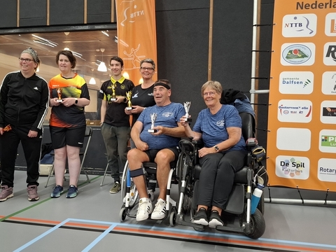 Robert speelde vorig jaar tweede klasse rolstoel en had een mooie uitdaging, vooraf zat er een derde plaats in maar er moest eerst even gespeeld worden. Na een stroeve start won hij de eerste wedstrijd en vervolgens ook de tweede van Christiaan. Tegen Erwin kwam Robert tekort maar won wel weer van Juul en zo eindigde Robert op een mooie tweede plaats.