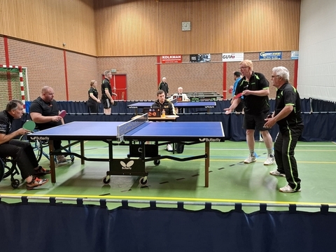Zaterdag 8 maart 4:40 uur de deur uit, eerst Angelien ophalen en dan Robert in Doetinchem waar wij zo 5:00 uur wegreden. Negen uur arriveerde wij bij de sporthal waar een pittige dag wachten, 18 deelnemers en een poule van negen spelers. Met 8 wedstrijden in het vooruitzicht een maar even inspelen.