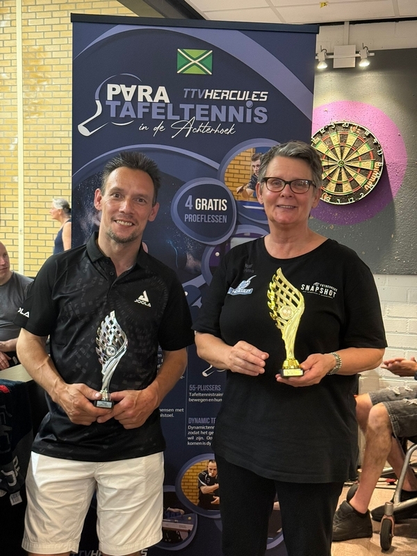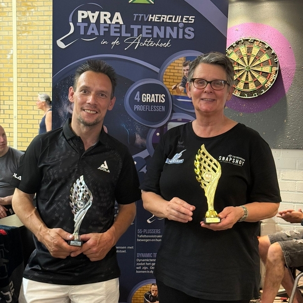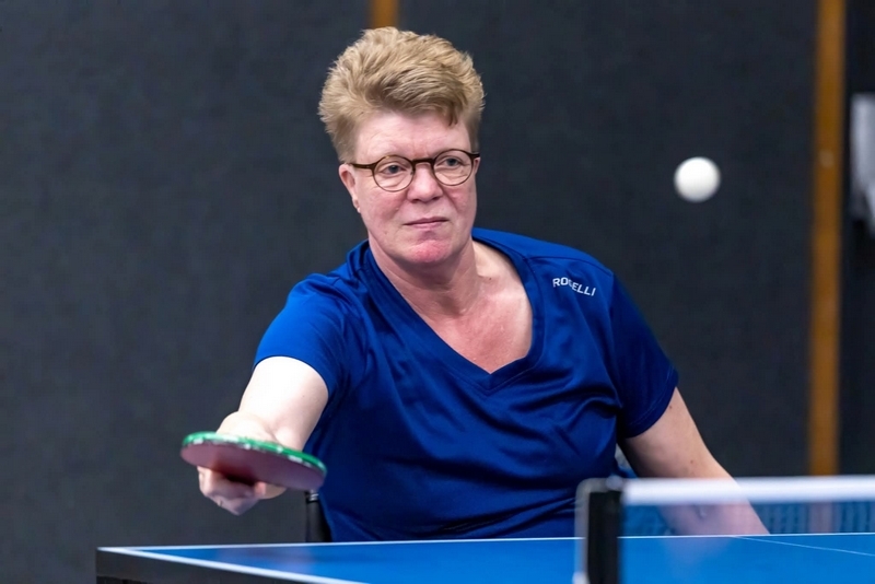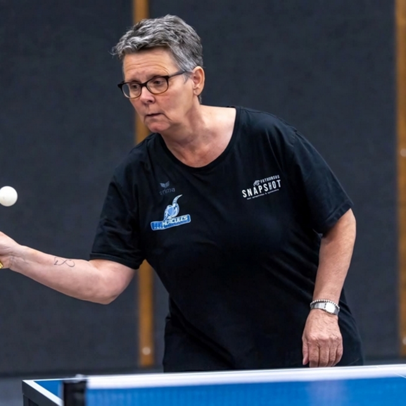 Mijn naam is Angelien en ik heb in 2023 een revalidatie traject doorlopen bij Klimmendaal en daar hebben we ook gekeken naar een geschikte sport. Dit is tafeltennis en zodoende ben ik september 2023 begonnen bij Hercules Terborg. Na een jaar trainen onder begeleiding van Andre, ben ik dit jaar september 2024 begonnen met de para toernooien, wat een geweldige ervaring. Nu kijken hoever ik kan komen/gaan zonder dat ik teveel lichamelijke narigheid ondervindt!